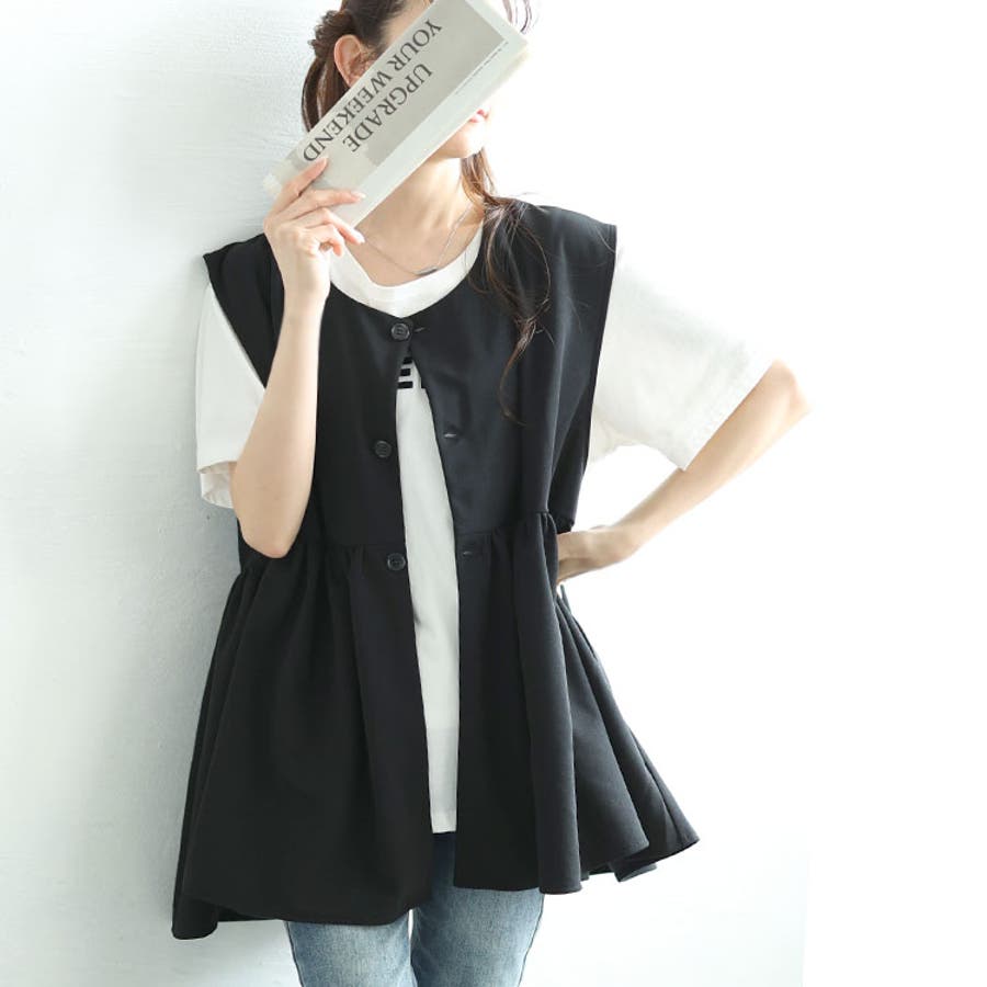 ふんわりとした裾が女性らしさを引き立てるペプラムベストです。