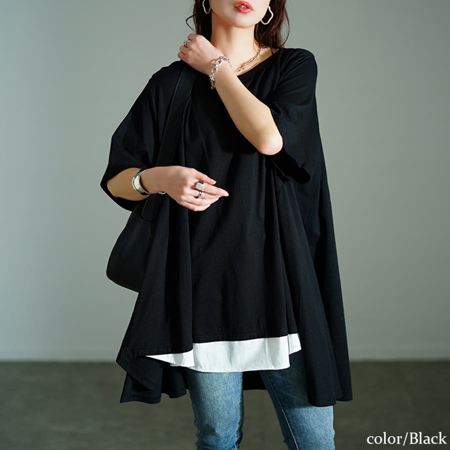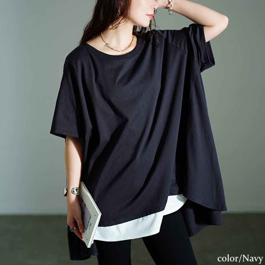 裾フェイクレイヤードチュニック