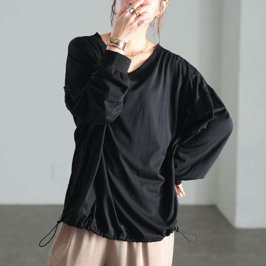 こなれ漂う大人のレースデザイン裾ドロストプルオーバーの登場です。