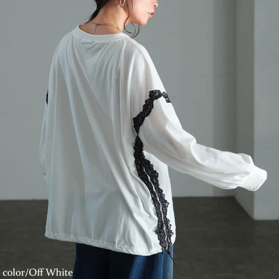 レースデザイン裾ドロストプルオーバー