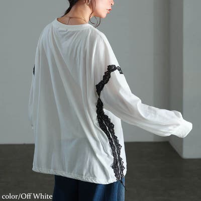 ラフなシルエットに上品なレースを組み合わせた他にはないレース使いがデイリーコーデに女っぽさプラス。