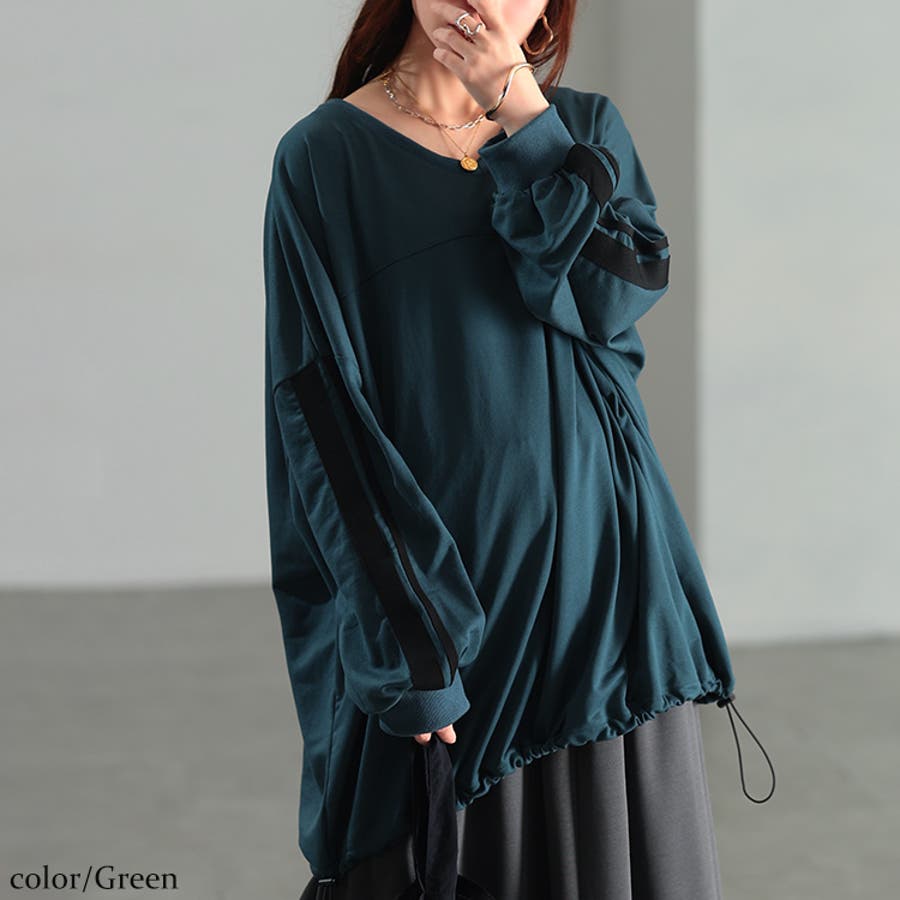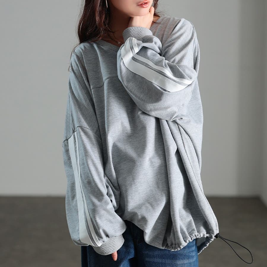 スリーブにあしらわれたスポーティーなサイドラインが、シンプルながらも個性的な存在感を放つプルオーバー。裾に施されたドロストでキュッと絞れば丸みのあるバルーンシルエットに、緩めればストレートなAラインシルエットにと、気分やボトムスに合わせて自由にアレンジ。