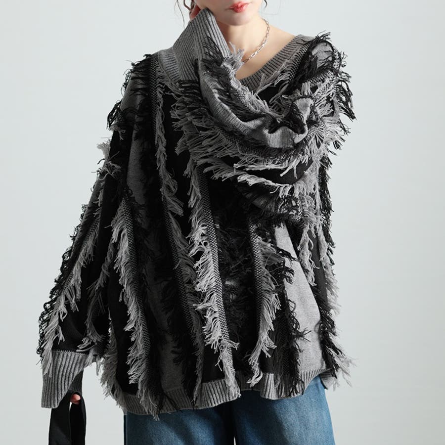 知的な色合いでシックな大人モードを演出するニットは、グレー×ブラックの配色が落ち着きある大人な印象を演出しながら、高見え感もアップ。たっぷりのフリンジが揺れ、表情あるシルエットで存在感も高めます。ストライプ柄に切り替えられた配色で、スタイリッシュな印象に。