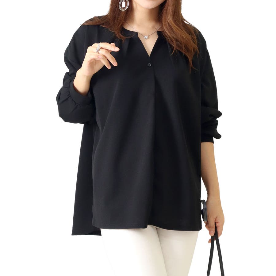 長袖のキーネックブラウスです。