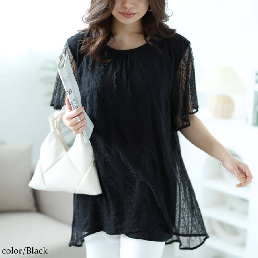 縦ラインを強調した総レースで着痩せも叶うフェミニンなチュニックの登場です。