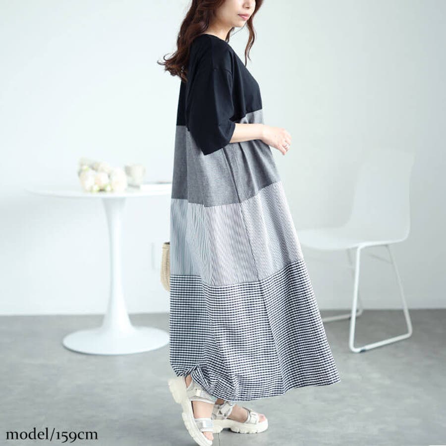様々な柄の切り替えのティアードデザインで体型カバーも◎