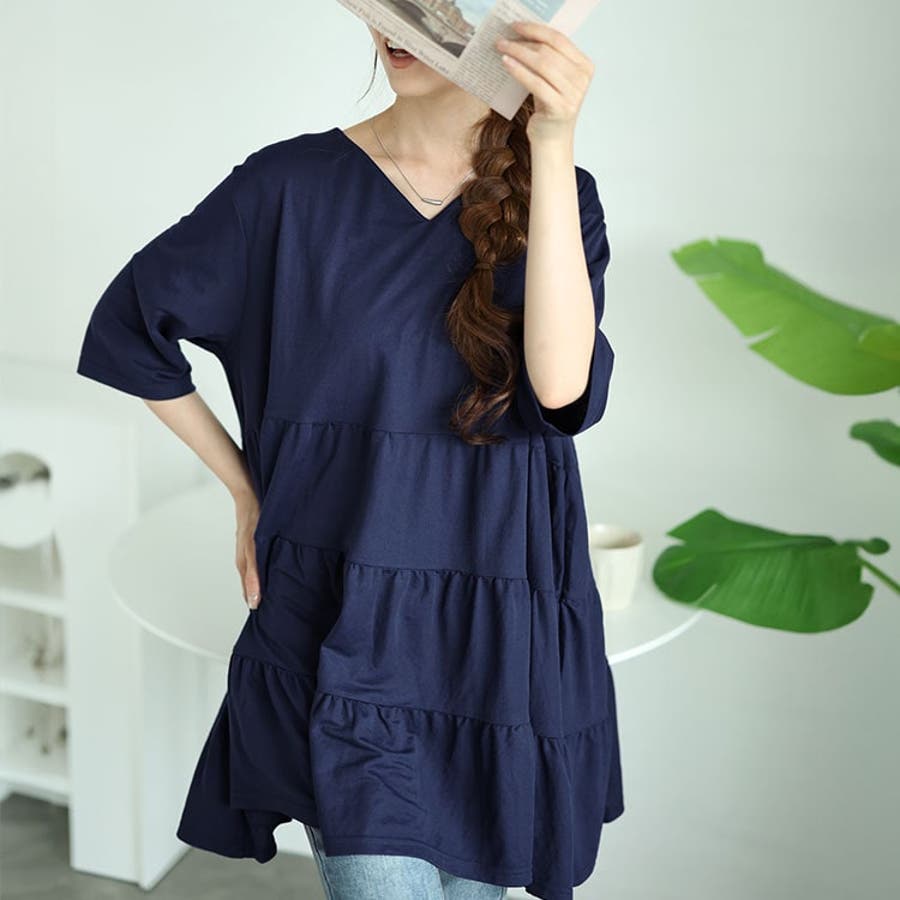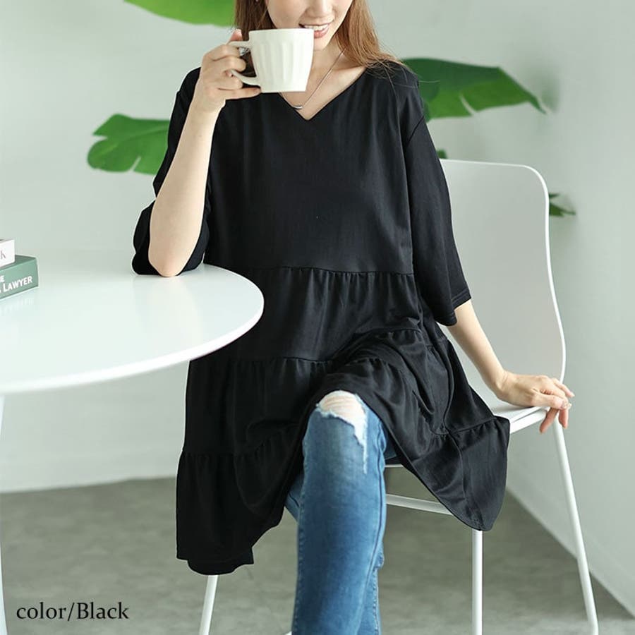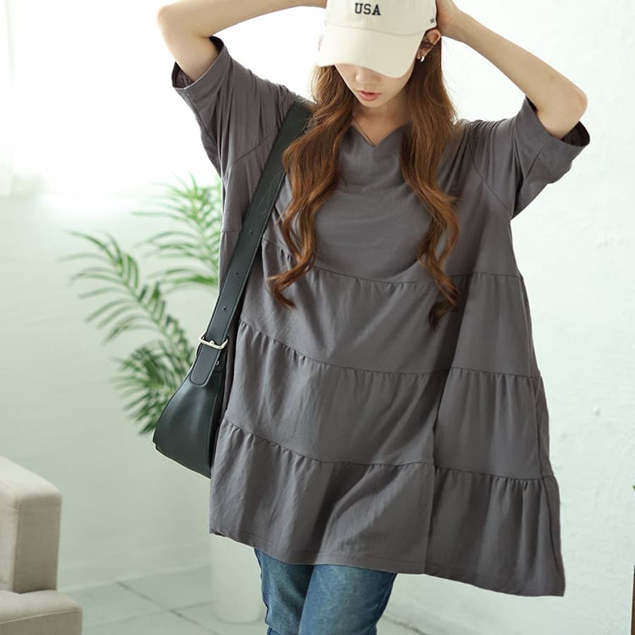 ゆるっと感のあるティアードデザインで体型を拾わずストレスフリーな着心地です。