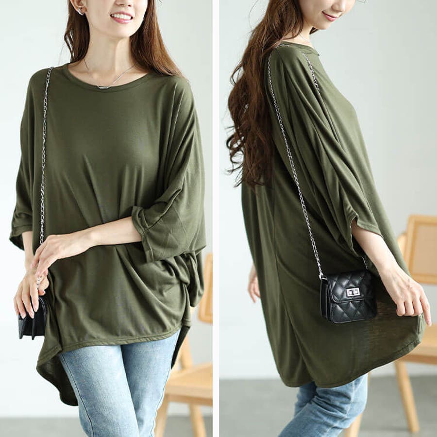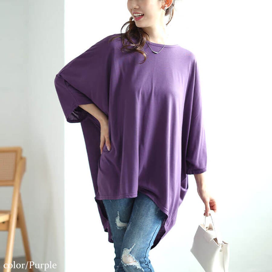 大きいサイズレディース チュニック テールカットワイドドルマンプルオーバー