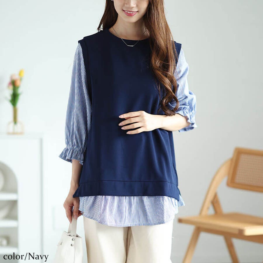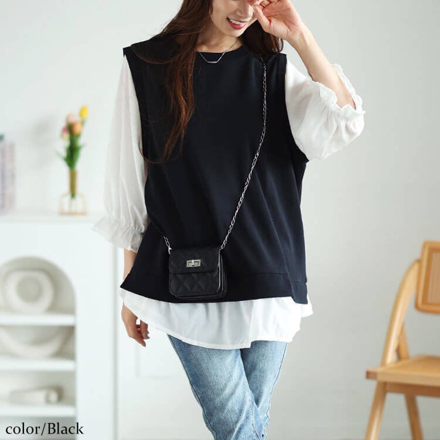 大きいサイズレディース チュニック フェイクレイヤードキャンディスリーブチュニッ…