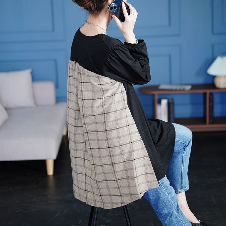 後ろチェック切り替えチュニック