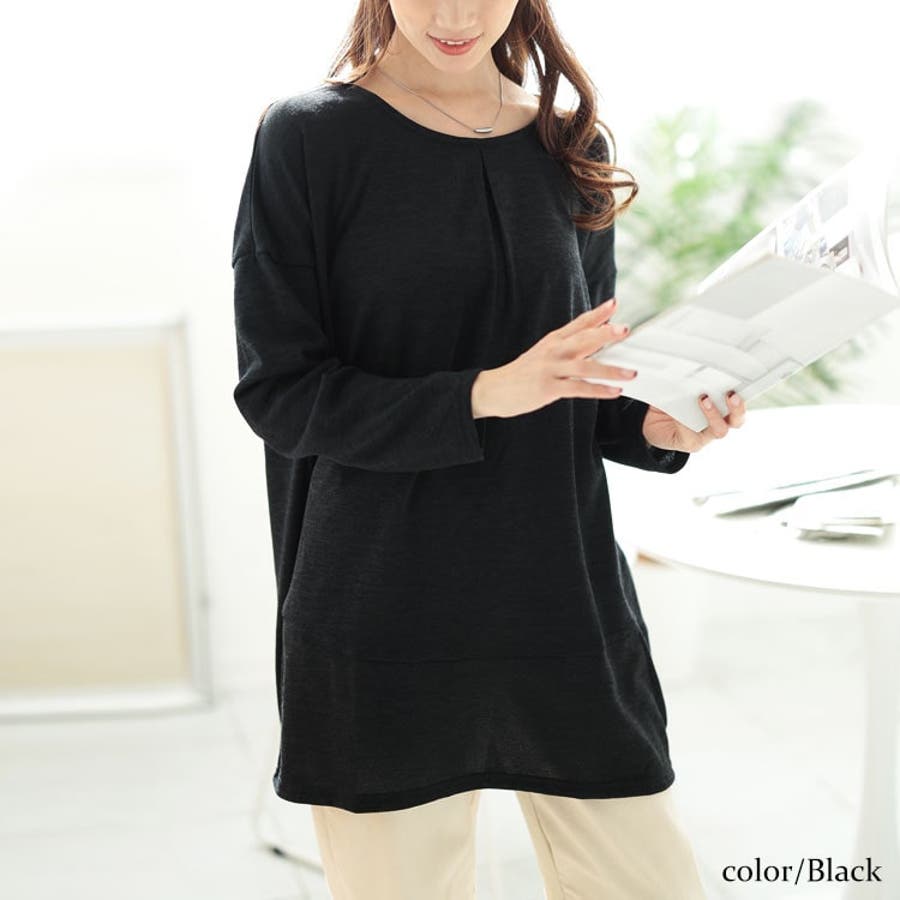 大きいサイズレディース チュニック 胸タックコクーン切り替えプルオーバー