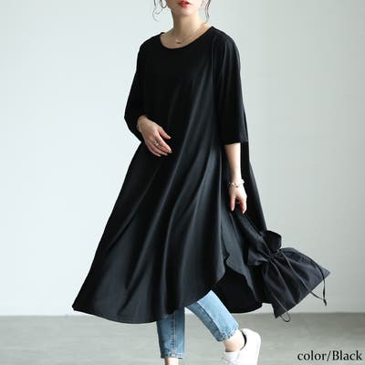 ふんわり舞う華やかシルエットにモードさ漂うラフなワンピースは、ふわりと広がるシルエットが女性らしい印象に。カットソーデザインで、ラフなカジュアルさを演出しながら着こなしやすく、シンプルだからコーデを選びません。裾のラウンドヘムに、両サイドのスリットが抜け感と柔らかな雰囲気をプラスします。