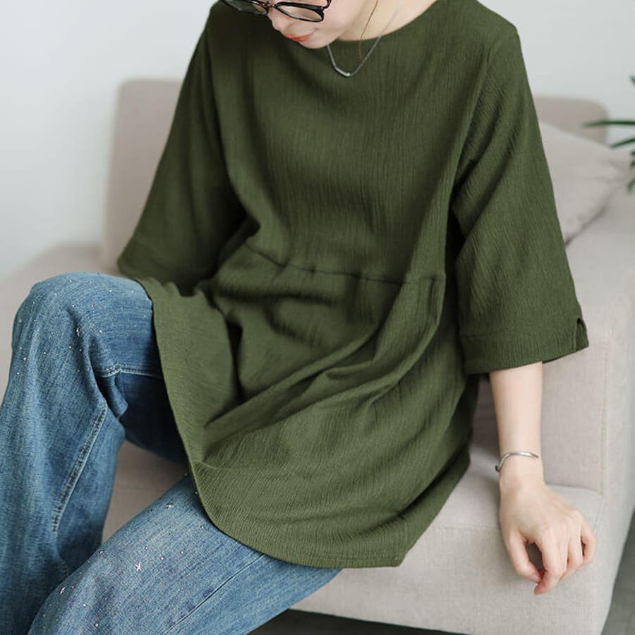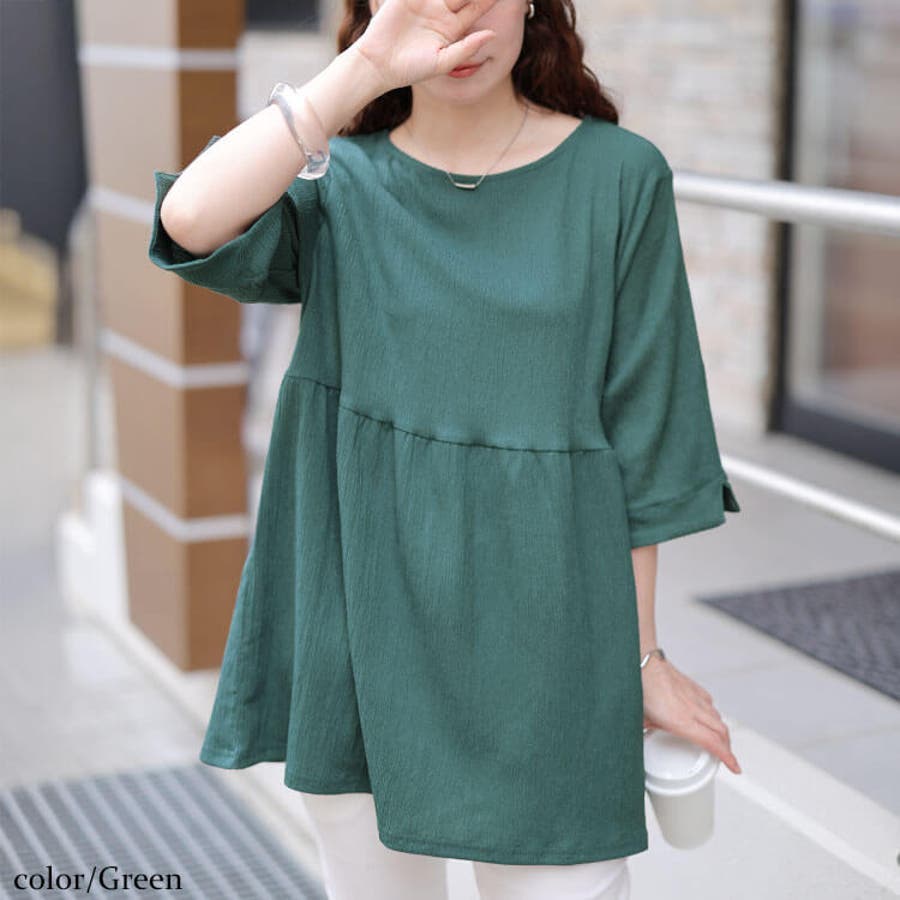 普段~お出かけまで着まわせる、楊柳フレアペプラムチュニック。