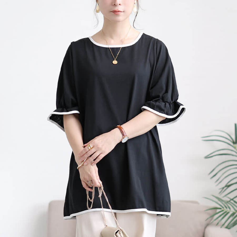 配色パイピングキャンディスリーブチュニック