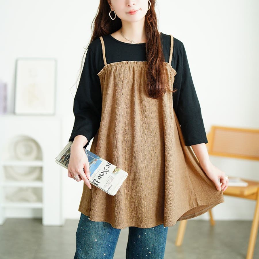 フェイクレイヤード楊柳キャミチュニック