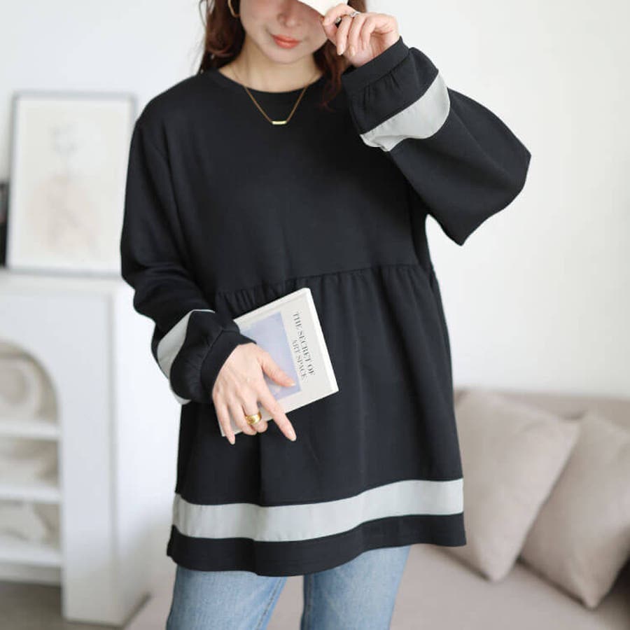 スポーティ&ガーリーに着映える、配色異素材切り替えペプラムチュニックの登場です♪