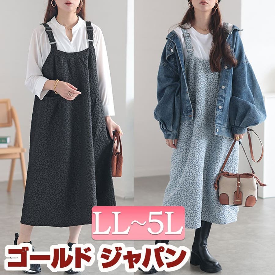 大きいサイズレディース ワンピース 小花ジャガードギャザーポケットジャンパースカ…