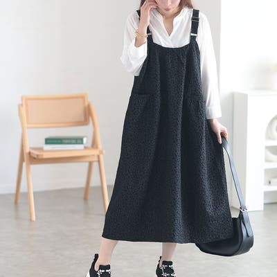 凹凸のある花柄ジャガード素材のサロペットワンピースの登場です。