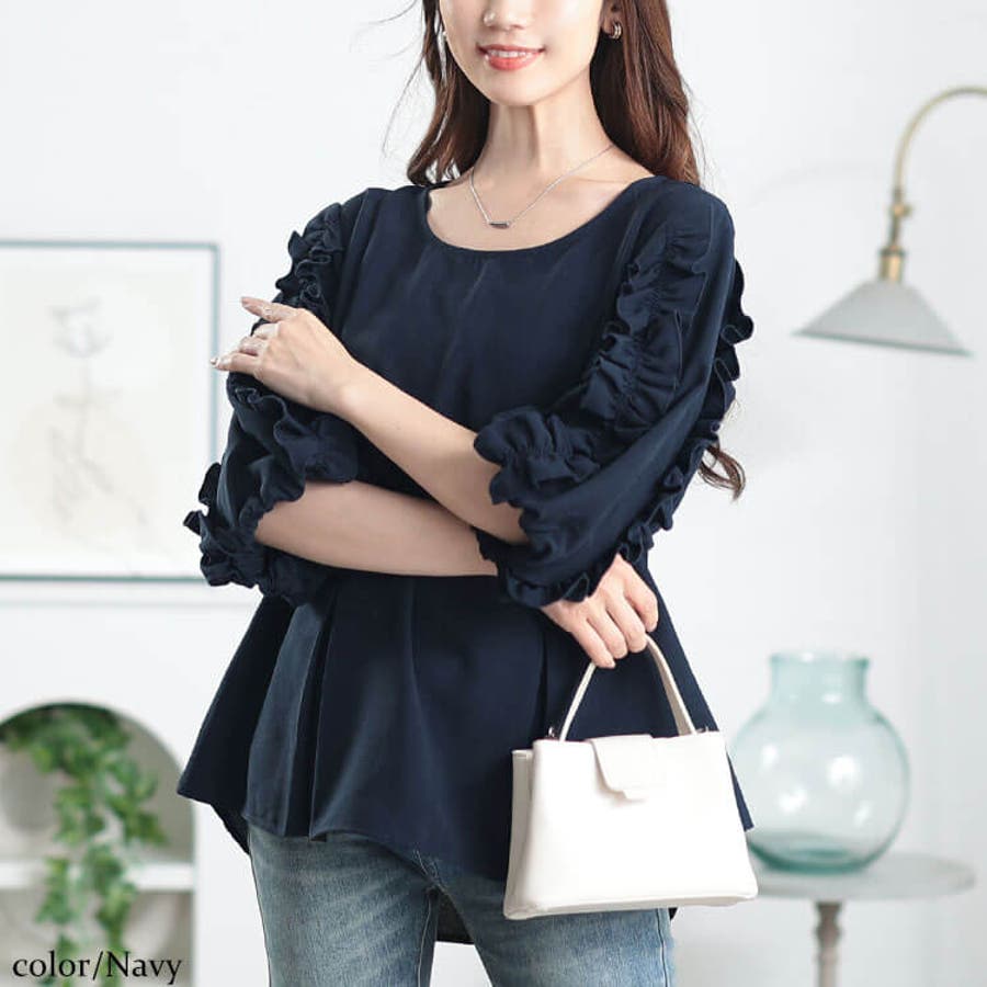 ぽわんっと可愛いボリューム袖×たっぷりフリルデザインで華やかに着映えをしながら二の腕もカバー◎