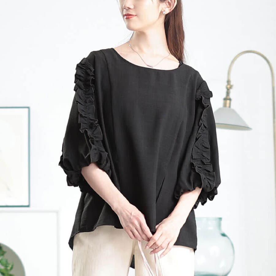 多機能で真夏も快適!乙女心ときめく接触冷感&UVカットフリル袖タックペプラムプルオーバー