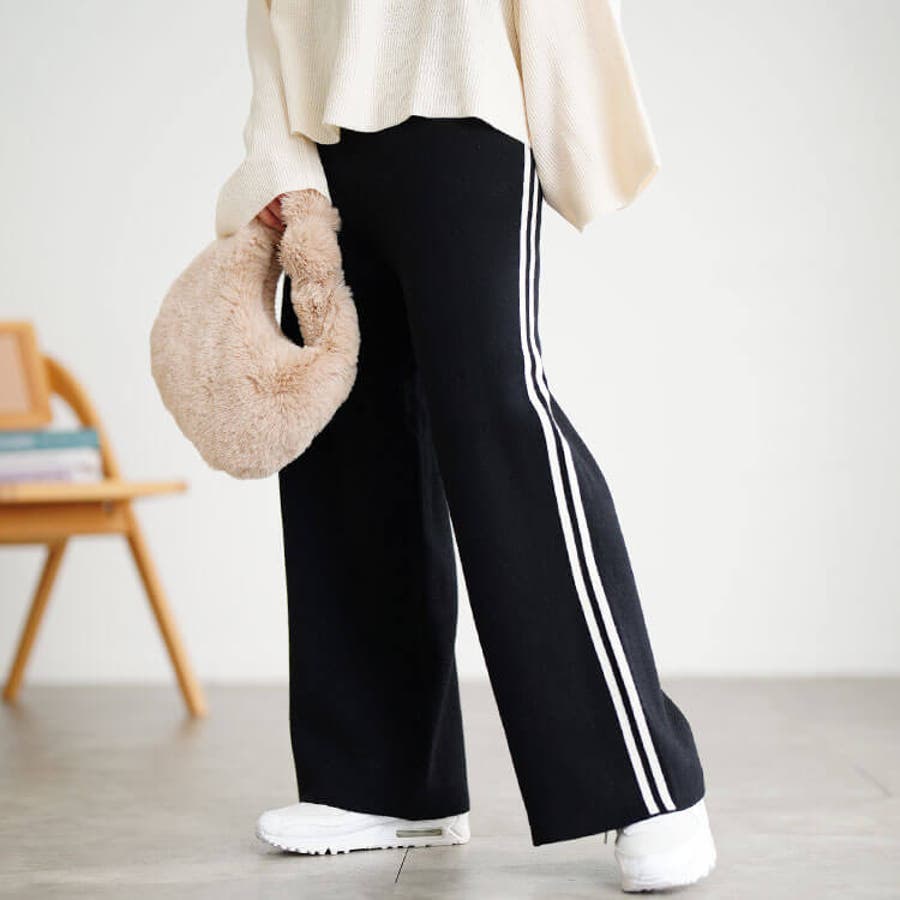 トレンド感のあるサイドラインでモード感とスポーティさが合わさった唯一無二の雰囲気に。