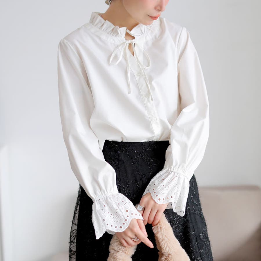 上品さと可愛さを両立したフリル襟ブラウスです。