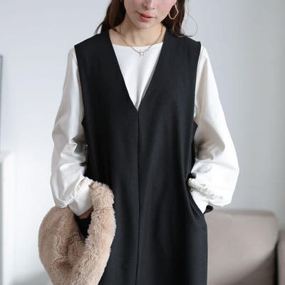 フラップポケットVネックジャンパースカート