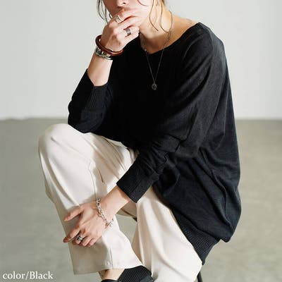 二の腕のをカバーしながら袖口に向かってシュッとコンパクトになる袖デザインが、ゆったりとした身幅とは対照的なメリハリをつくり華奢見えします◎