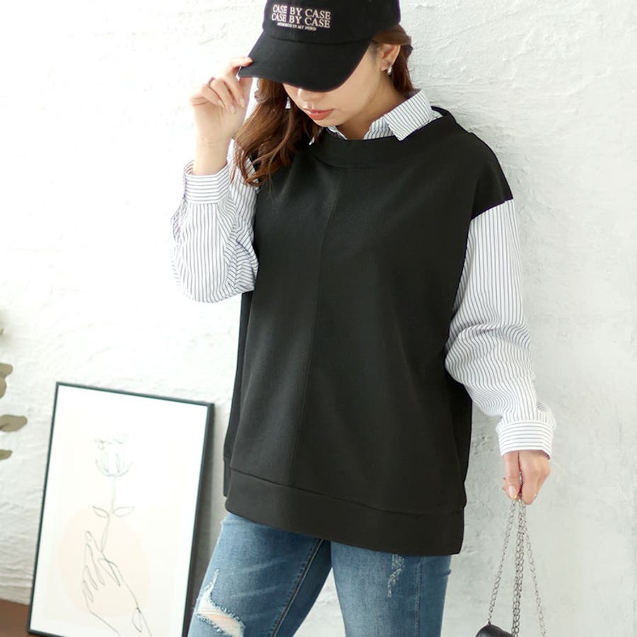 ストライプシャツフェイクプルオーバー