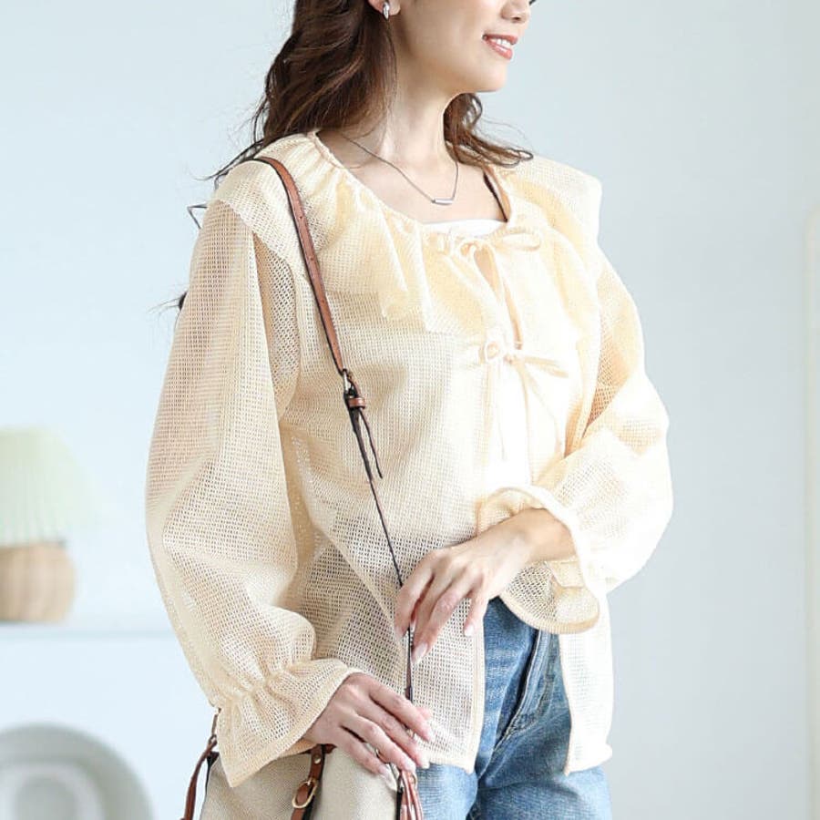 フレアカラーメッシュカーディガン