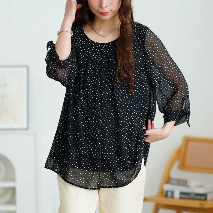ドットシフォンタックブラウス