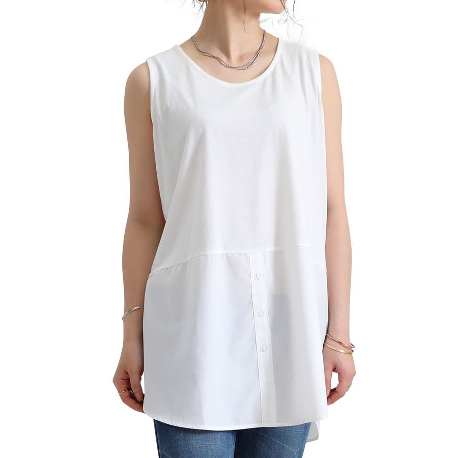 シャツ風切り替えがオシャレなタンクトップです。