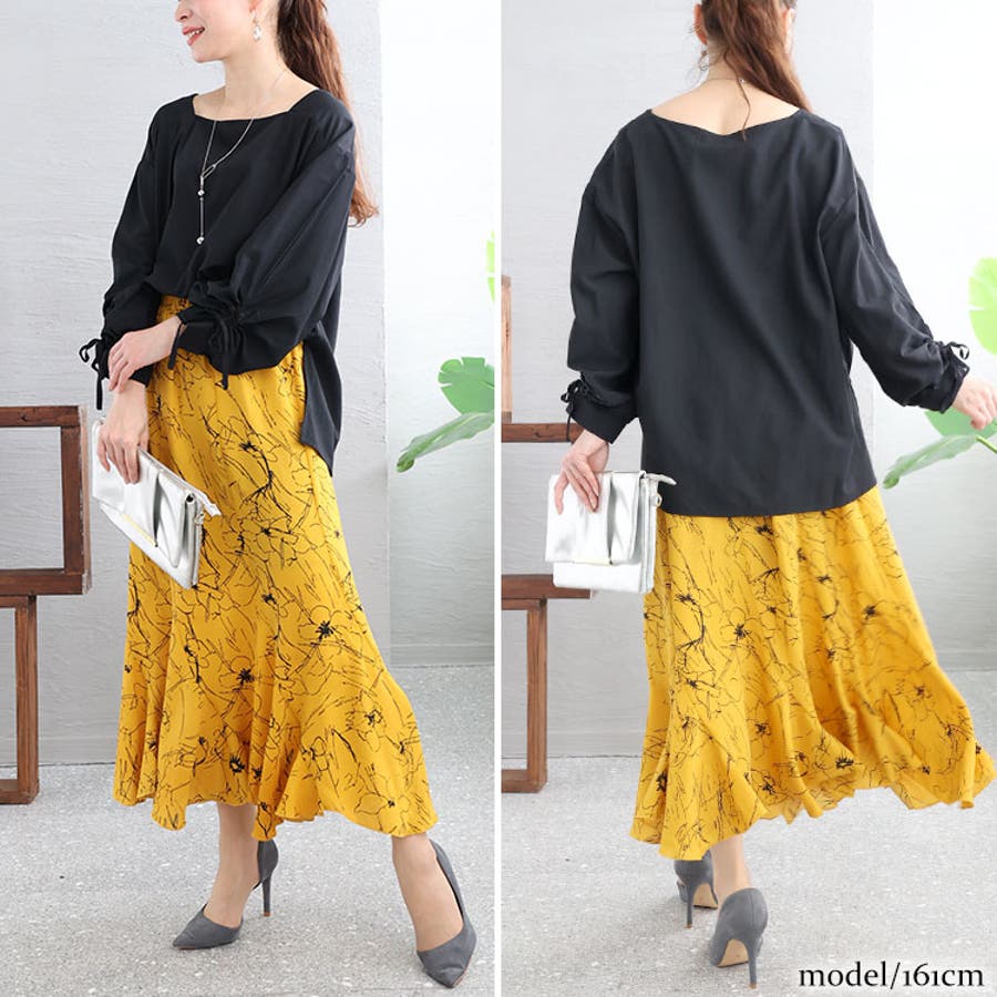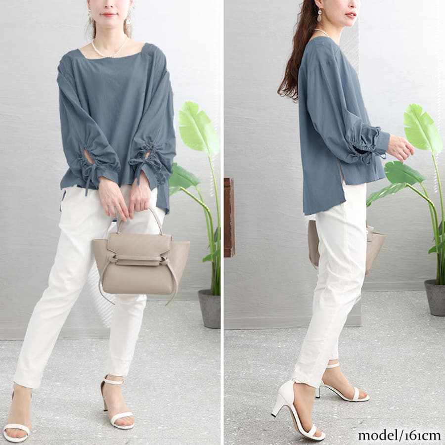 程よい袖のいボリューム感を紐で調節するドロストデザイン袖のふっくらとしたシルエットが、全体のコーデをお洒落な印象にしてくれます。