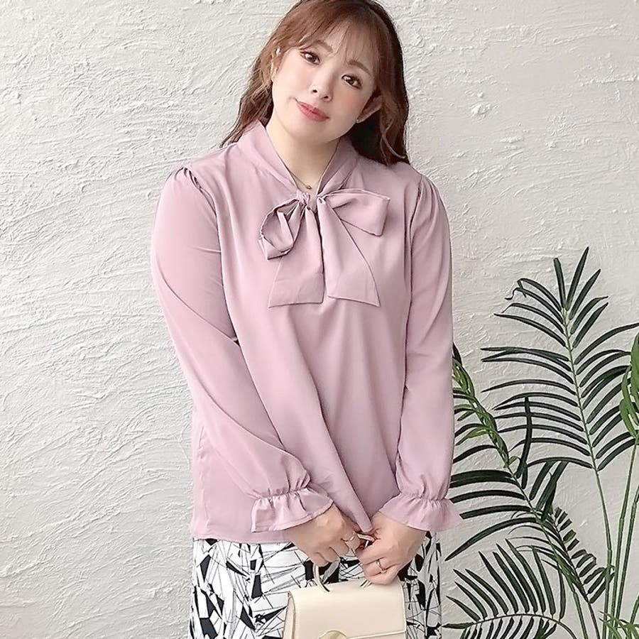 顔周りに華やかさをプラスするボウタイが、レディライクなアクセントに◎