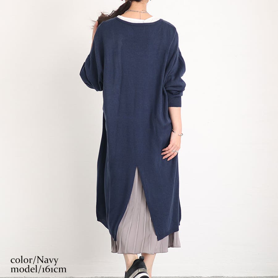 ロングニットは身幅に余裕をもたせて楽な着心地です。