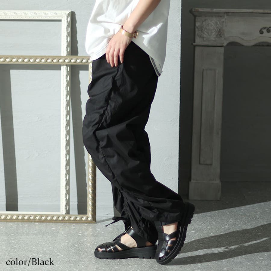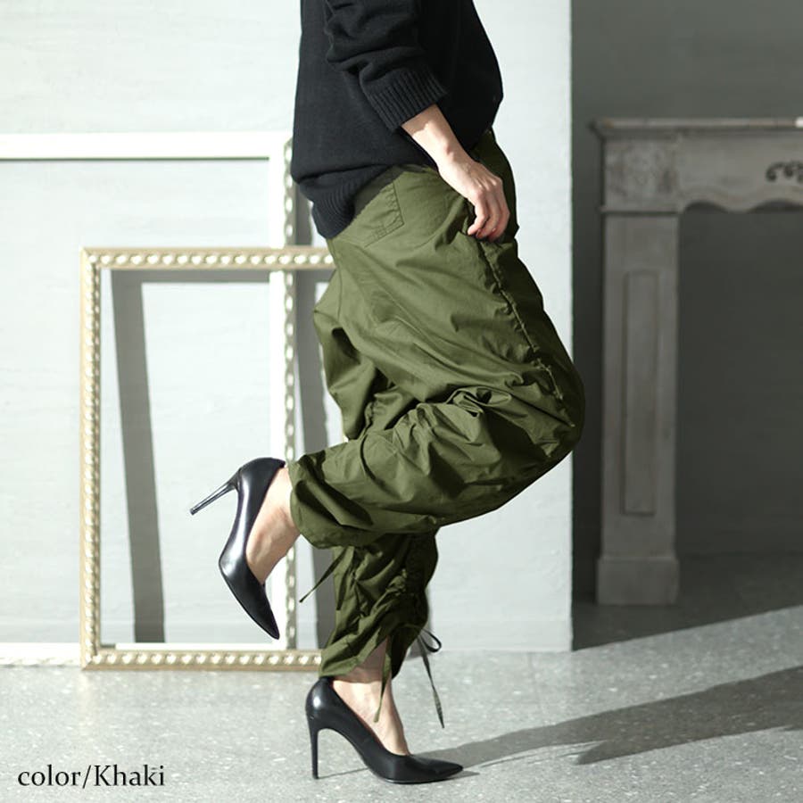 フロントのシャーリングが目を惹くドロストパンツの登場です。