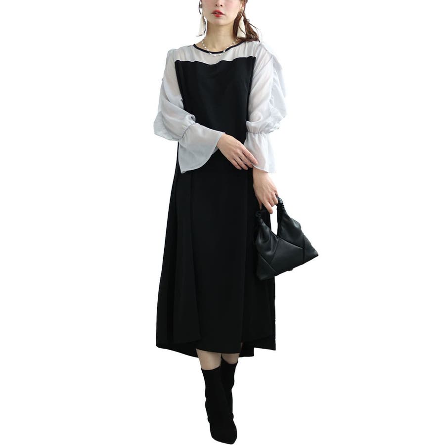 レイヤード風デザインが上品な切り替えワンピースの登場です。