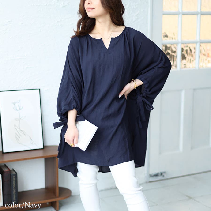 身幅に余裕を持たせたシルエットでリラクジングな着心地ながらリボンデティールで可愛らしさをプラス。