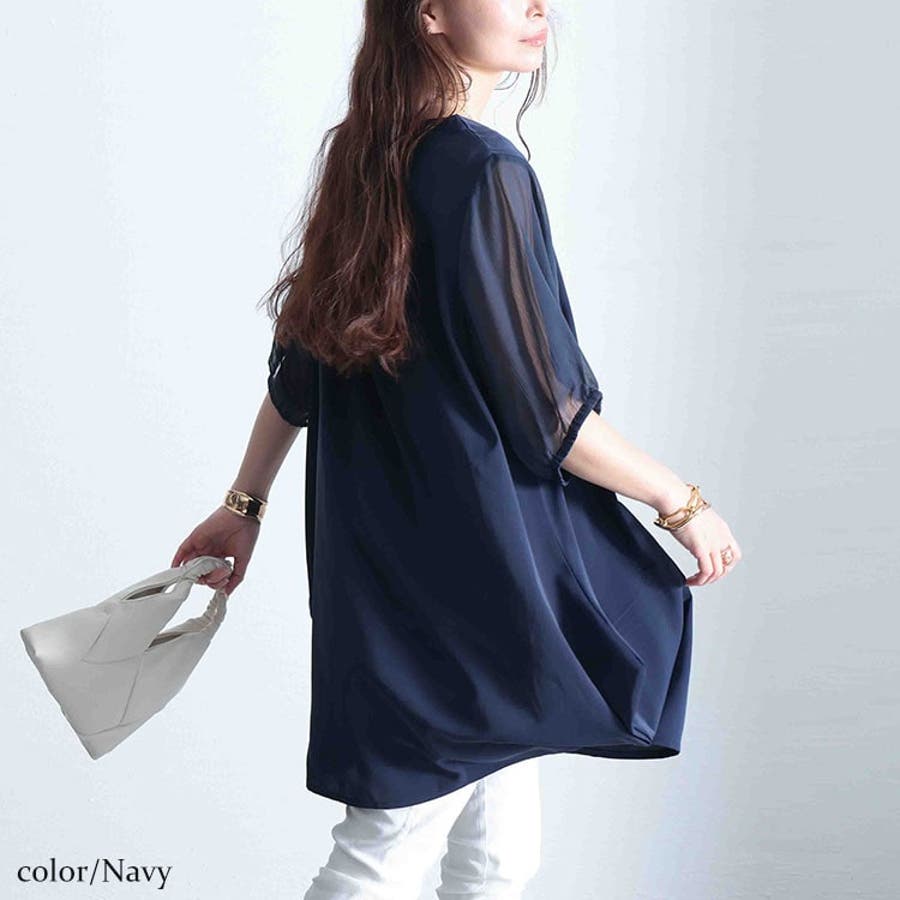 シアー袖とサイドドレープがポイントのキレイめチュニックワンピースの登場です。