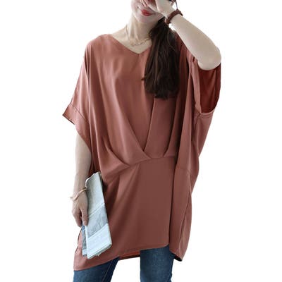 大きいサイズレディース チュニック タック入りコクーンチュニック