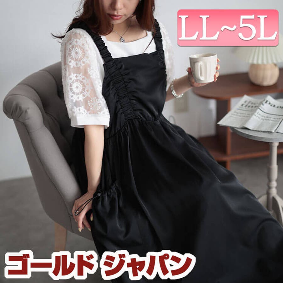 大きいサイズレディース ワンピース ドロストポケット肩ギャザージャンパースカート
