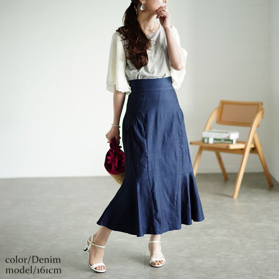 サイドの切り替えがポイントのマーメイドスカートの登場です。