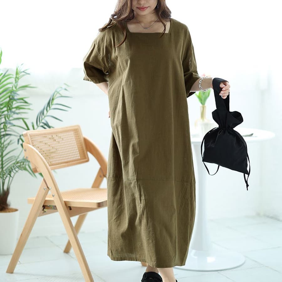 大きいサイズレディース ワンピース スクエアネックコクーンワンピース