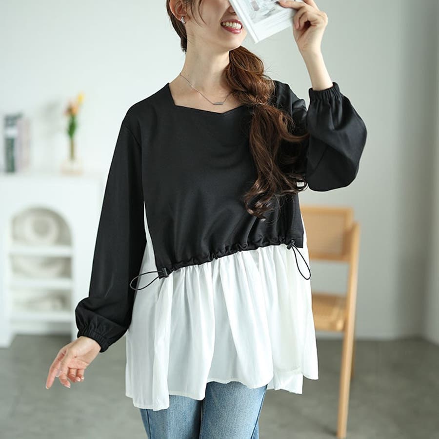 前ウエストドロスト付きで気分によってシルエットを変えられます♪