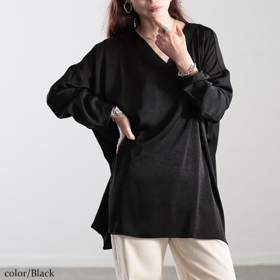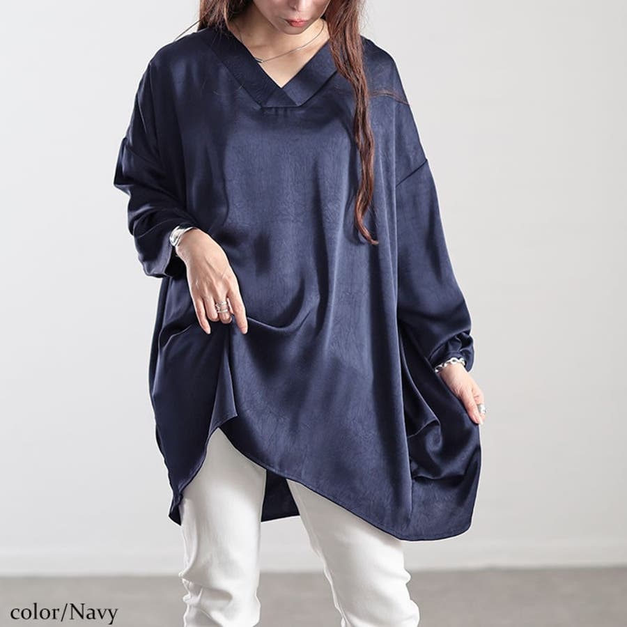 大きいサイズレディース チュニック Vネックサイドタックドルマンチュニック