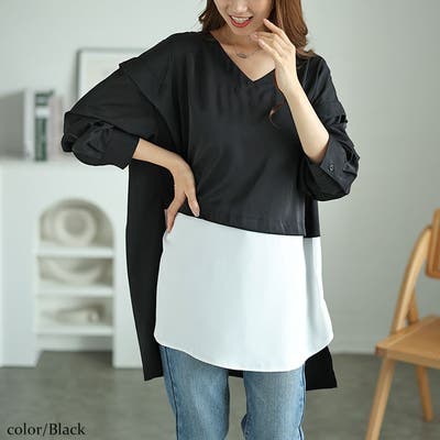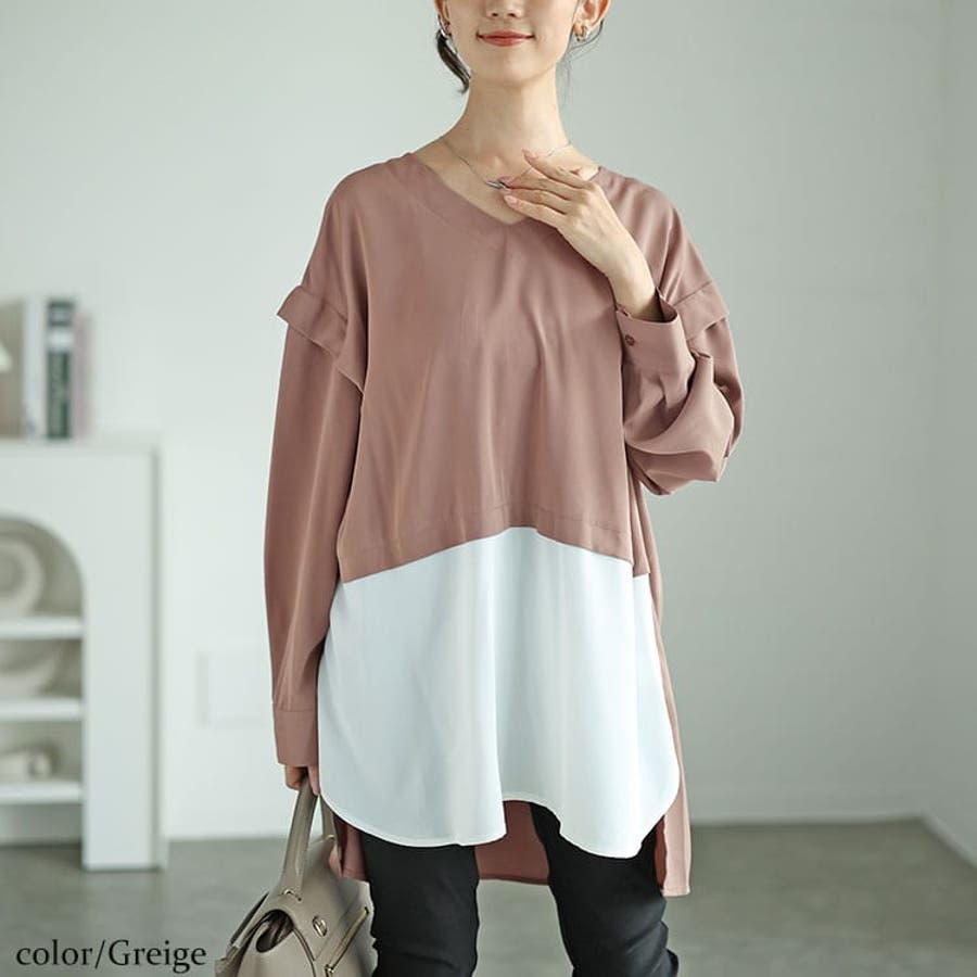 フェイクレイヤード肩デザインチュニック