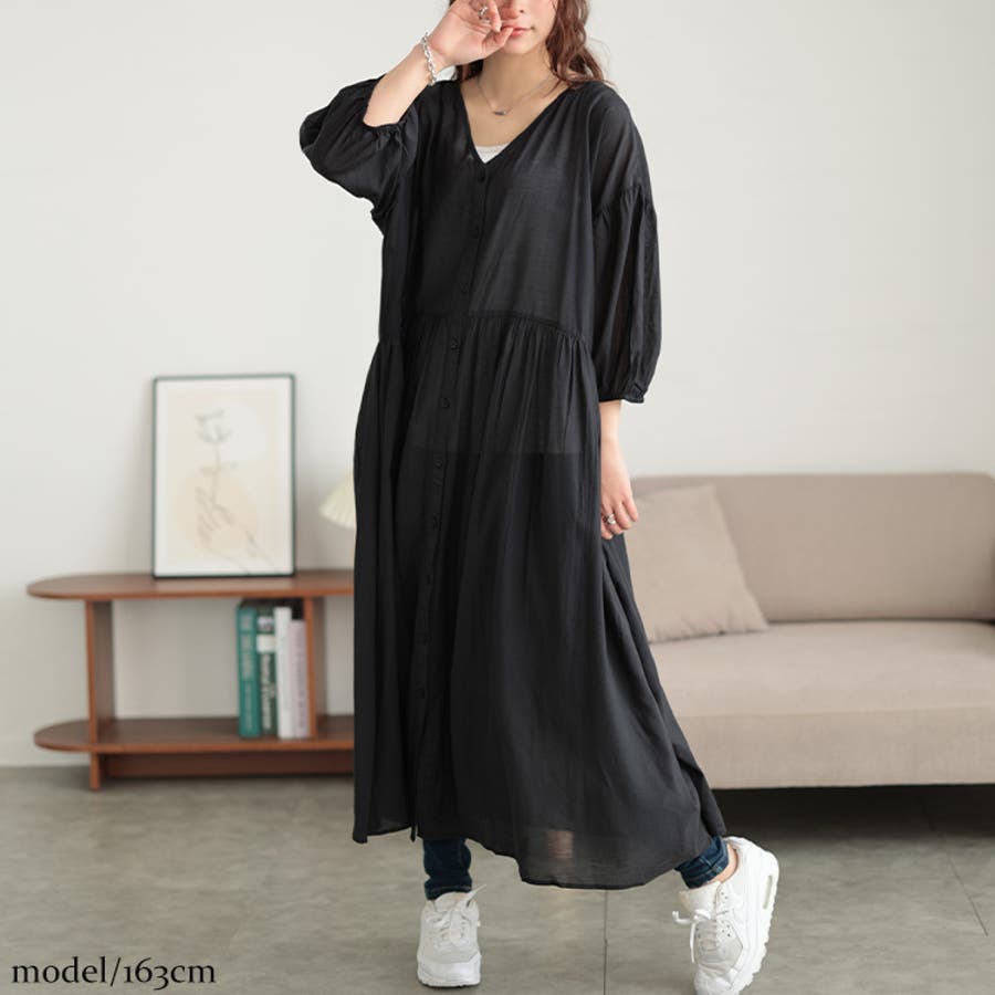 甘めの綺麗め大人スタイルに仕上げてくれるシャツワンピースは大人映えするVネックで、お顔周りをすっきり見せ、美しいデコルテを演出。ふんわりボリューム感のあるパフスリーブや、たっぷりのギャザーがレディな印象に。フルオープン可能な前立てだから、羽織りとしても活躍し、コーデの幅も広がります。