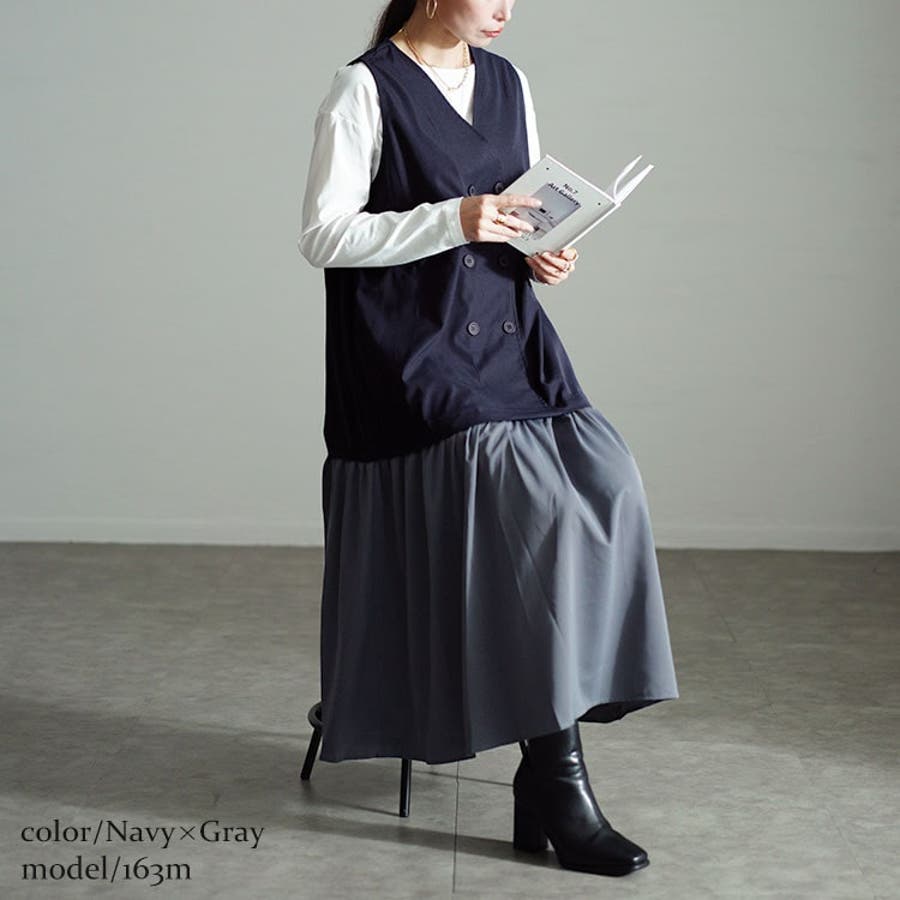 洒落見え確実!ジレにスカートをドッキングしたワンピース♪