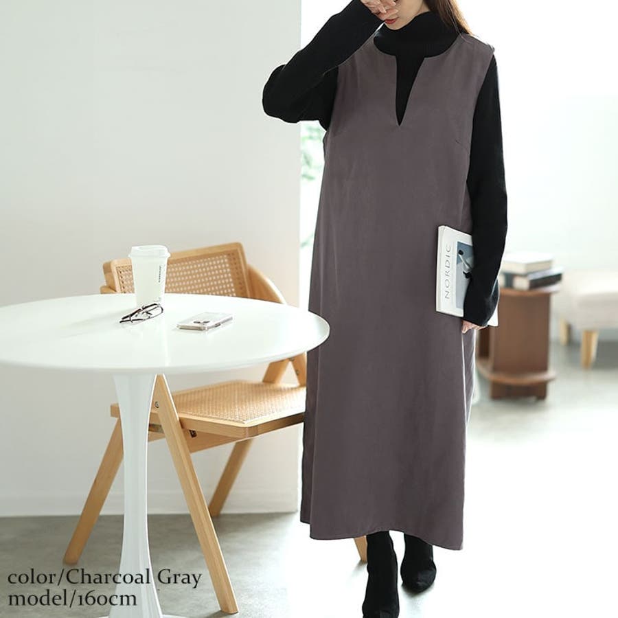 大きいサイズレディース ワンピース 深キーネックジャンパースカート