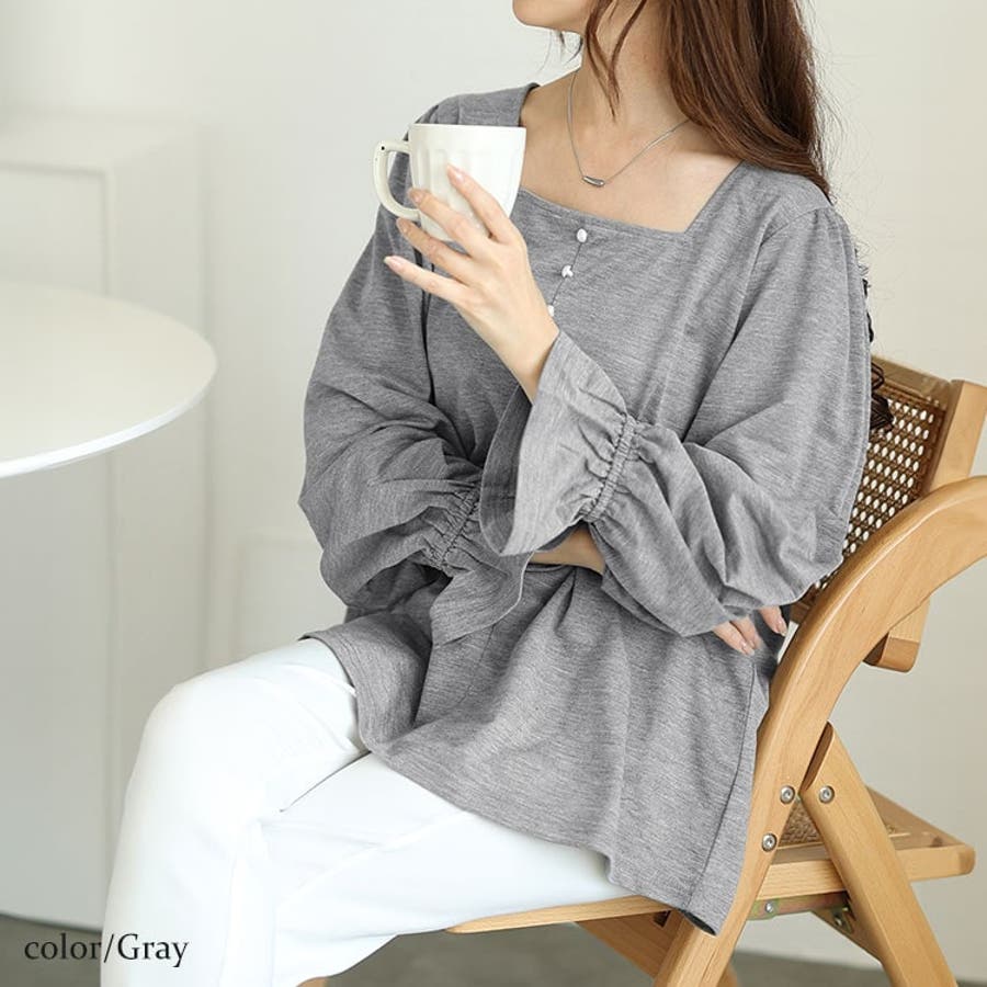 胸元のパールボタンも可愛いアクセントに☆アクセサリー要らずでコーデに華やぎをプラスしてくれます♪